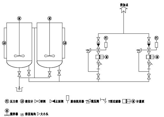 兩箱兩泵浸灌式加藥裝置系統(tǒng)圖